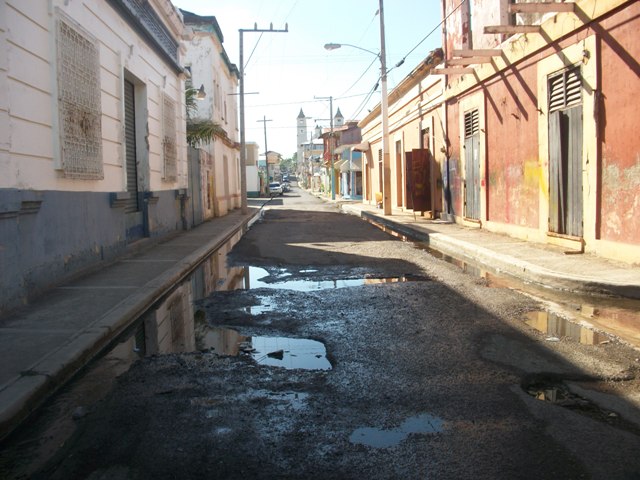 Puerto Plata:- Una gran cantidad de aguas residuales se acumulan en las grietas que con el paso del tiempo se han ido formando en la calle Duarte de esta ciudad.
